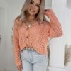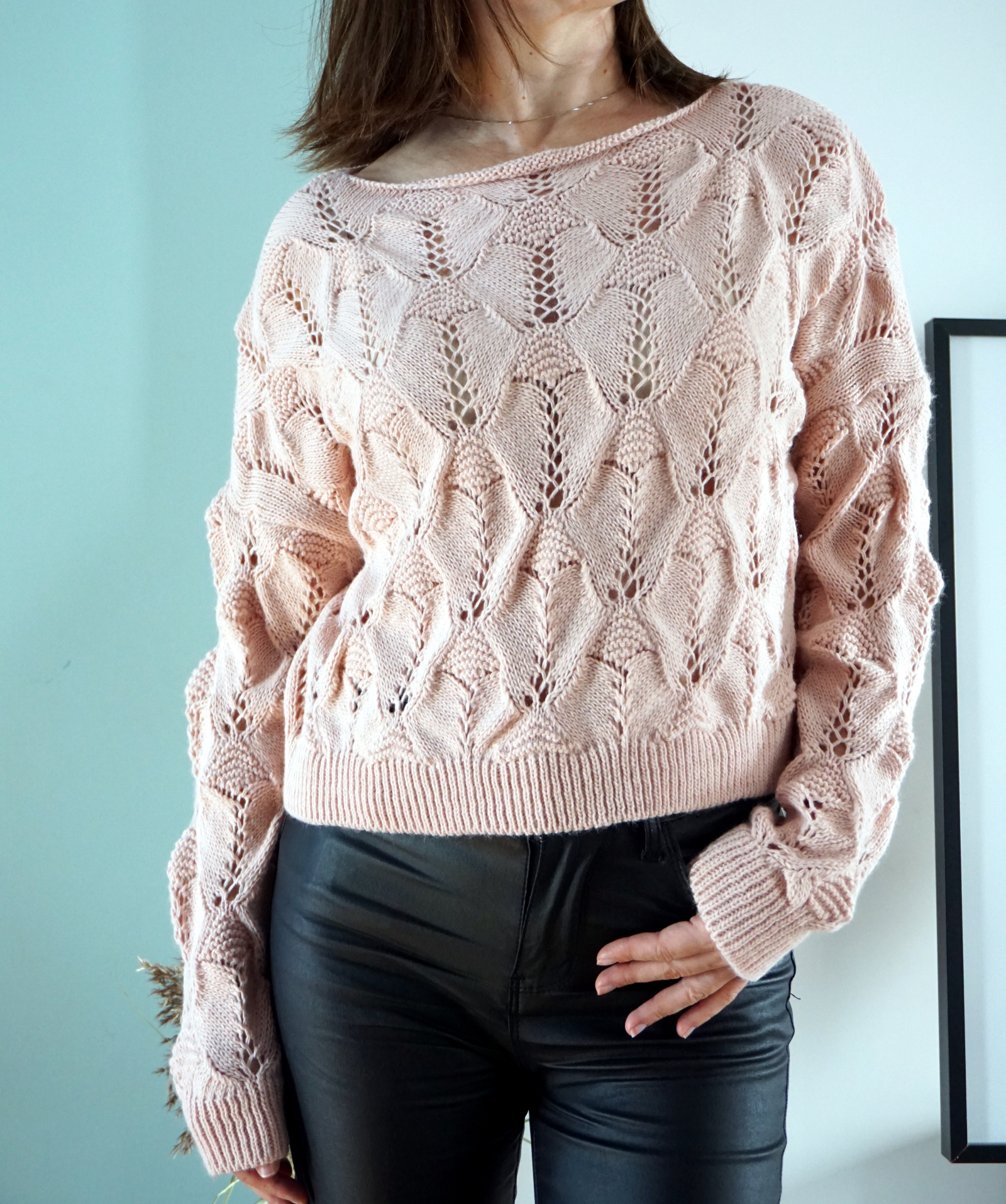 Miękki ażurowy sweter damski uniwersalny krótki brudny róż B5/6