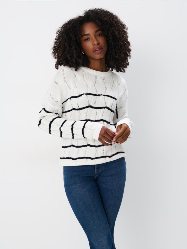 Bawełniany sweter w paski Kolor kremowy MOHITO 544BZ 01P