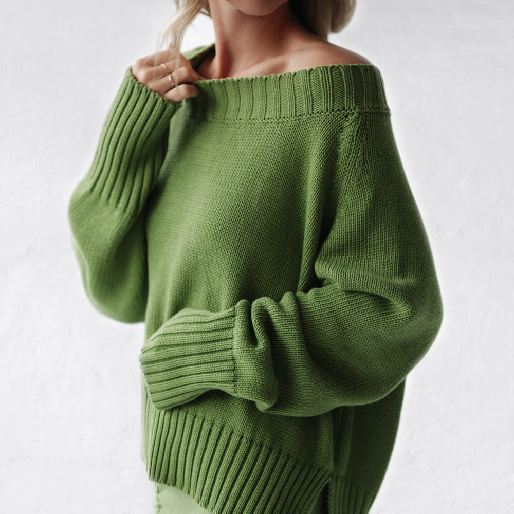 Sweter bawełniany z dekoltem w łódkę groszkowy