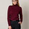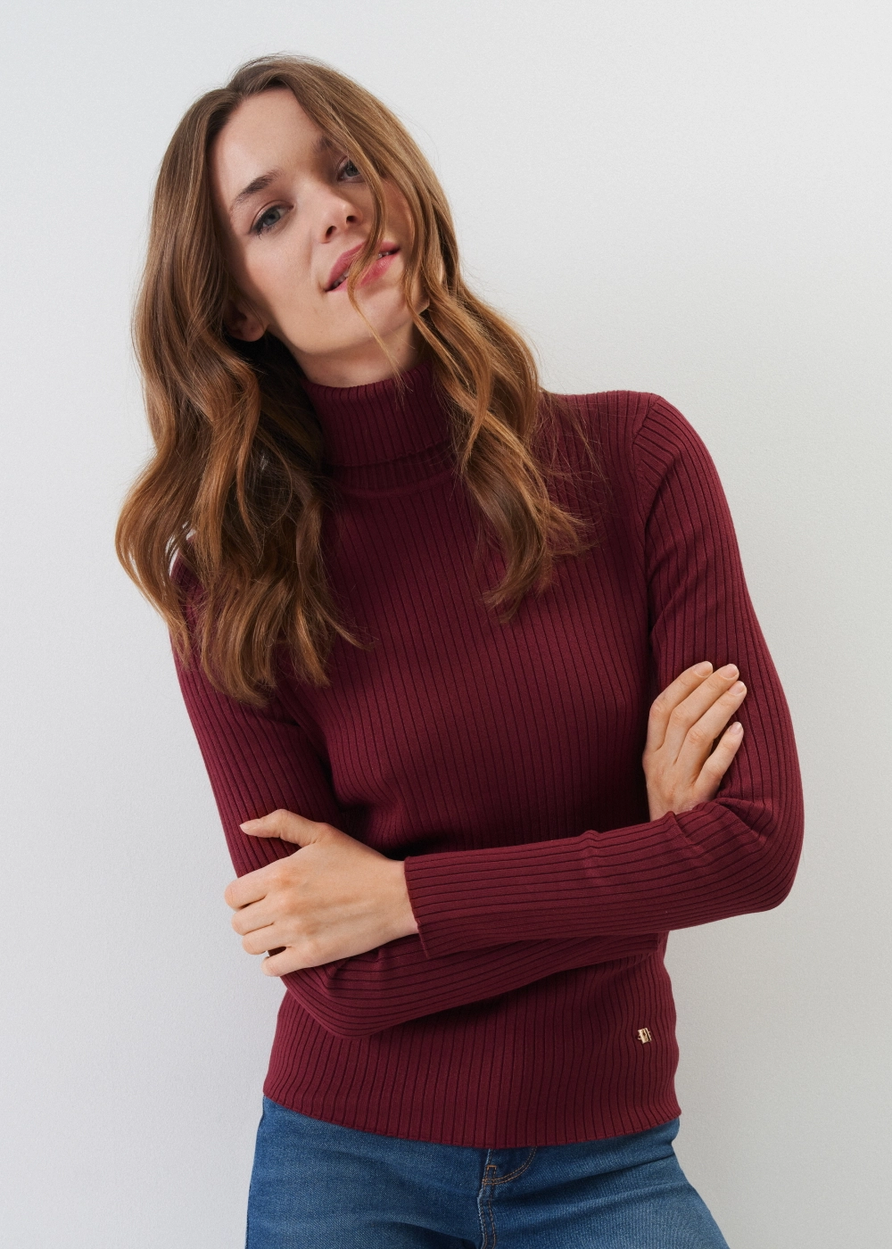 Bordowy sweter damski z golfem SWEDT 0184 49(Z23) | OCHNIK
