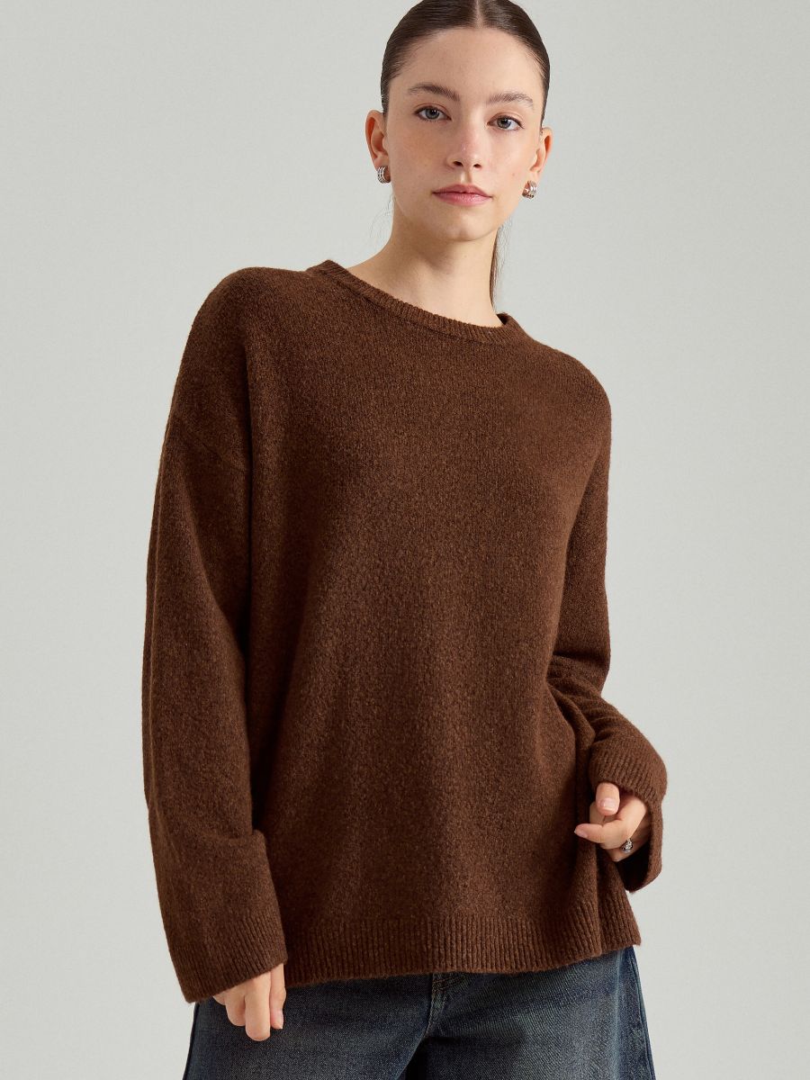 Luźny sweter z okrągłym dekoltem brązowy HOUSE 512BX 88M