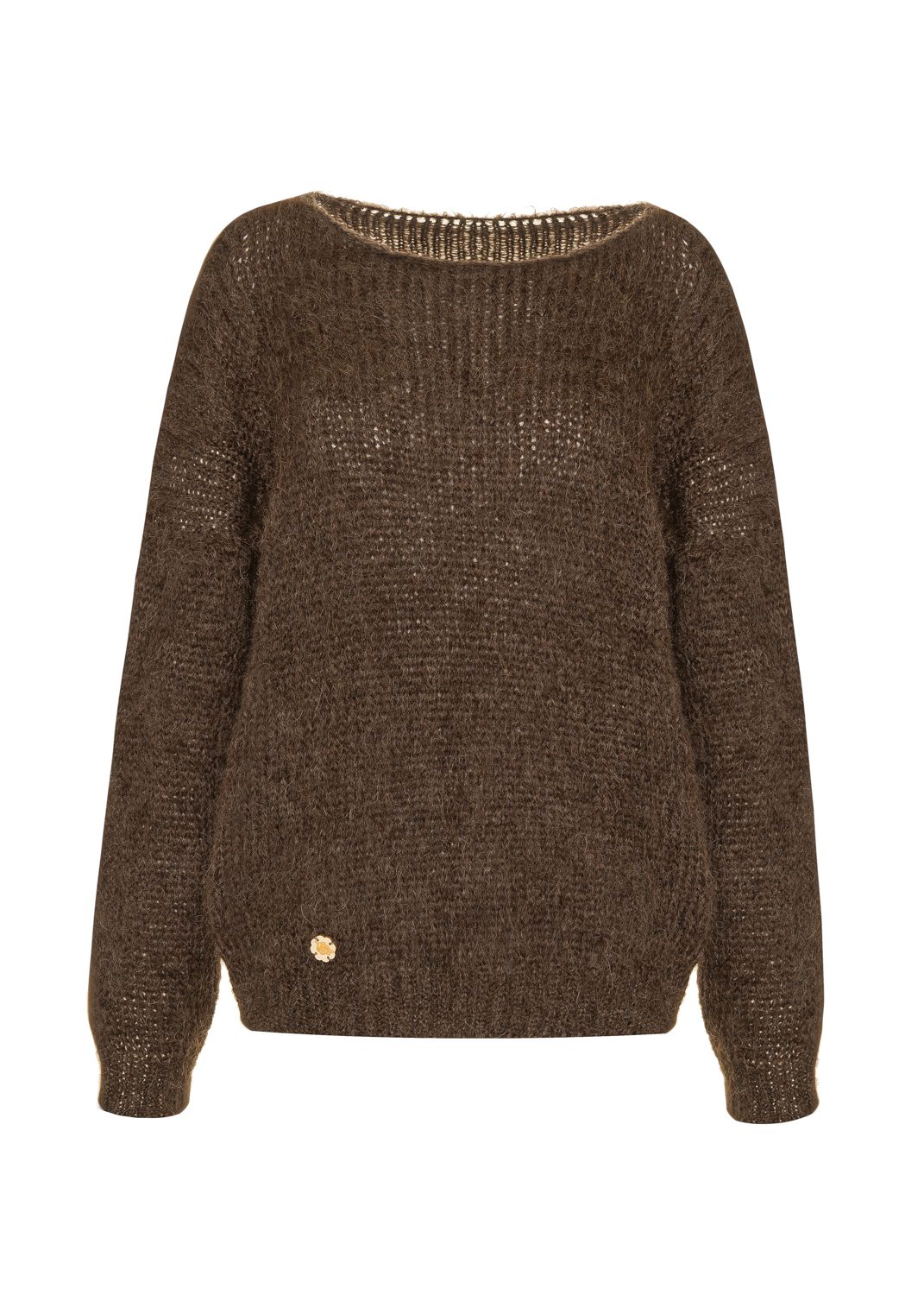Puszysty sweter ALPAKA SURI brązowy | Momonomo