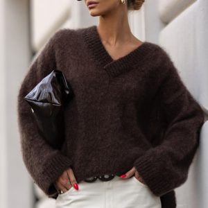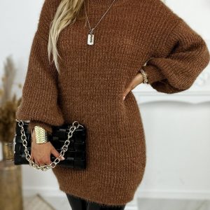 Luźny sweter z okrągłym dekoltem brązowy HOUSE 512BX 88M