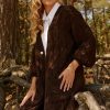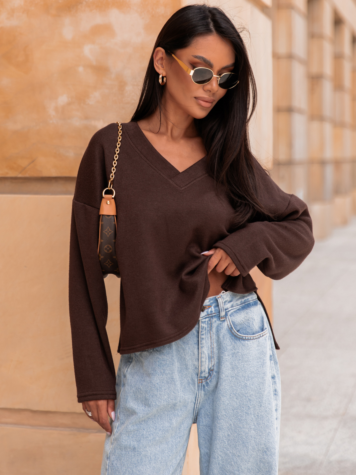 Luźny codzienny SWETER o klasycznym splocie z dekoltem w serek czekoladowy X301
