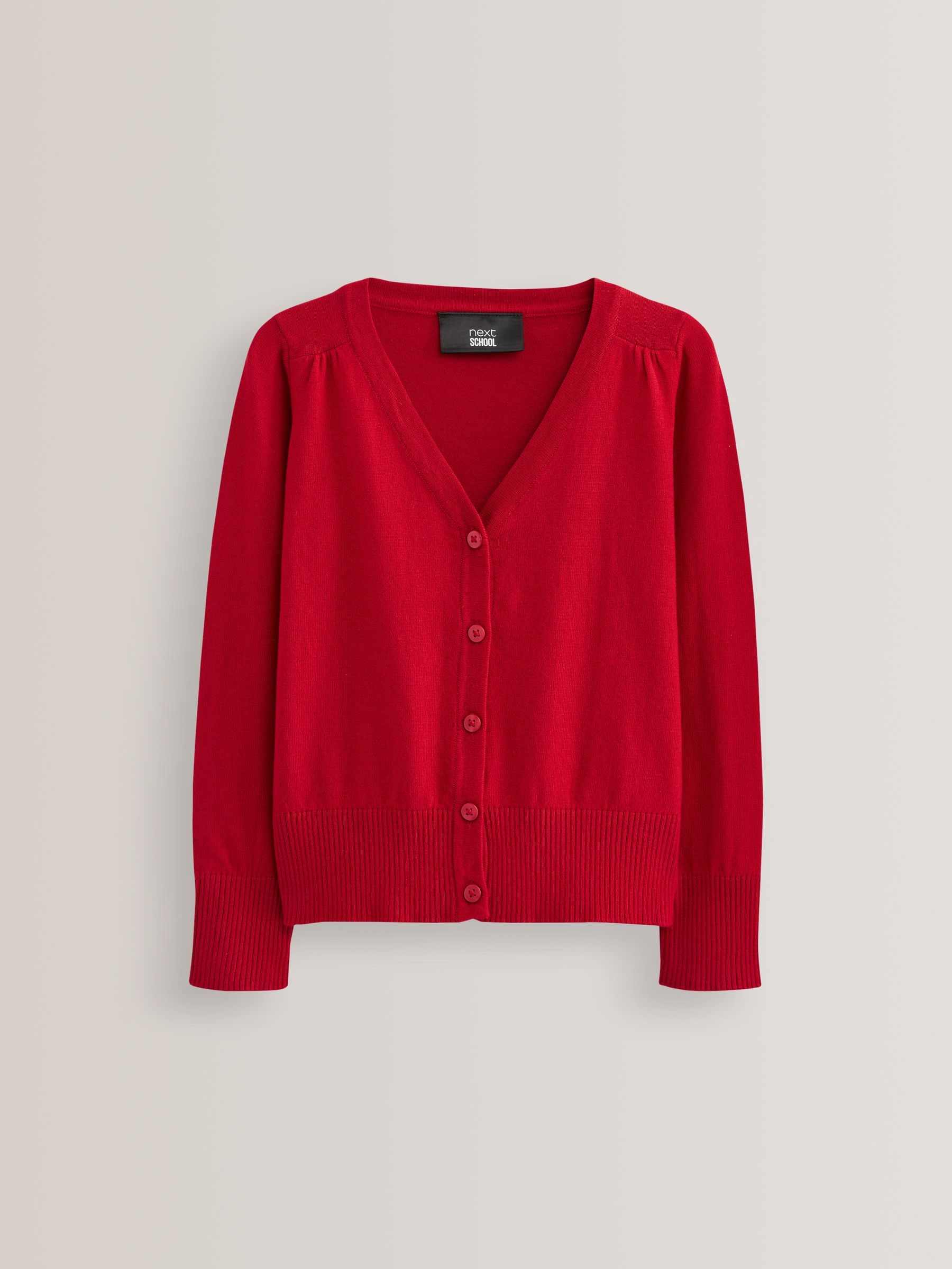 Red Cotton Rich School V Neck Cardigan (3 16yrs)
