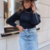 Sweter damski klasyczny z długim rękawem GRANATOWY sklep Moraj