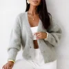 Moherowy kardigan damski oversize z guzikami taupe | Sklep internetowy Butik Perla