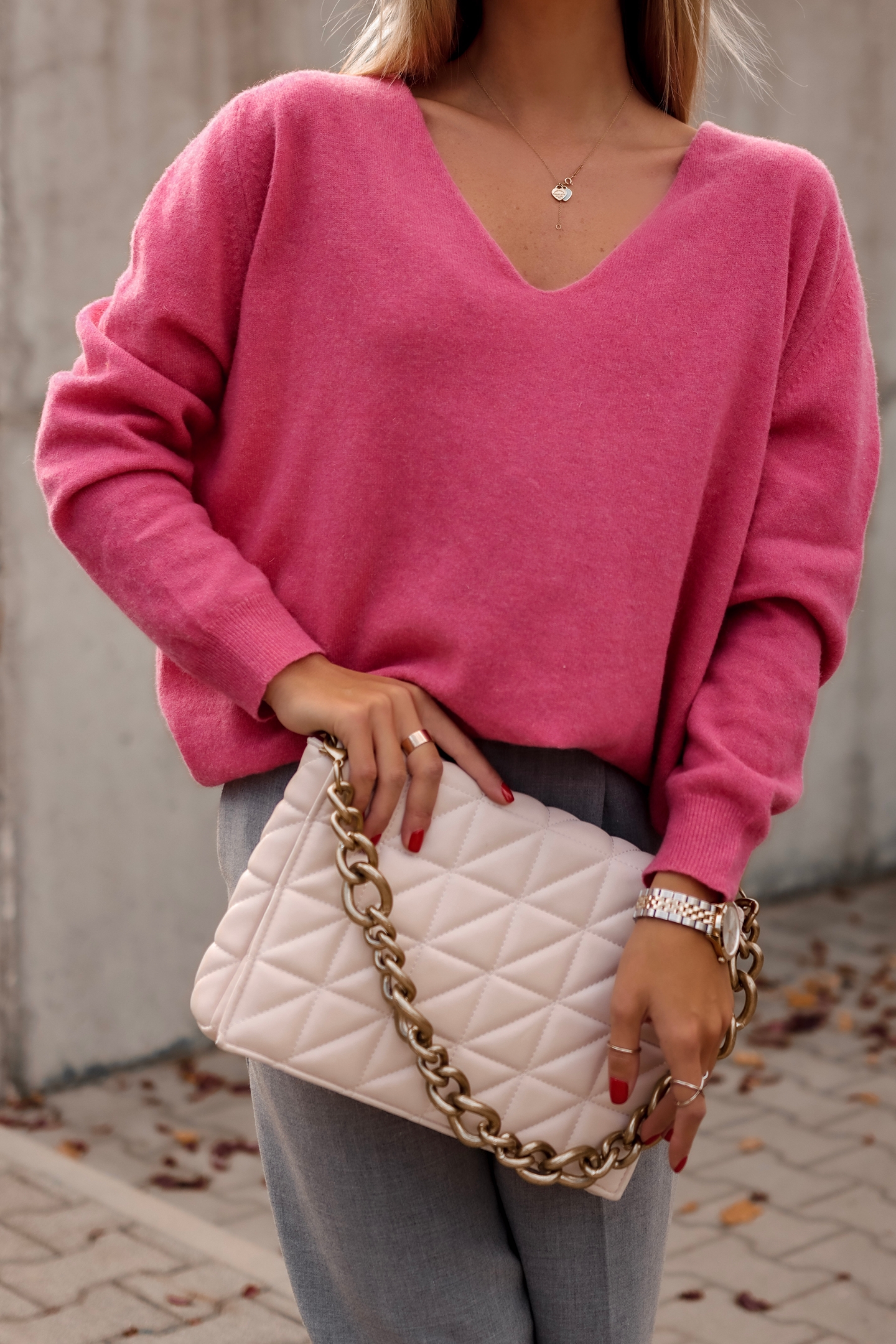 SWETER WEŁNIANO KASZMIROWY PREMIUM FUKSJA