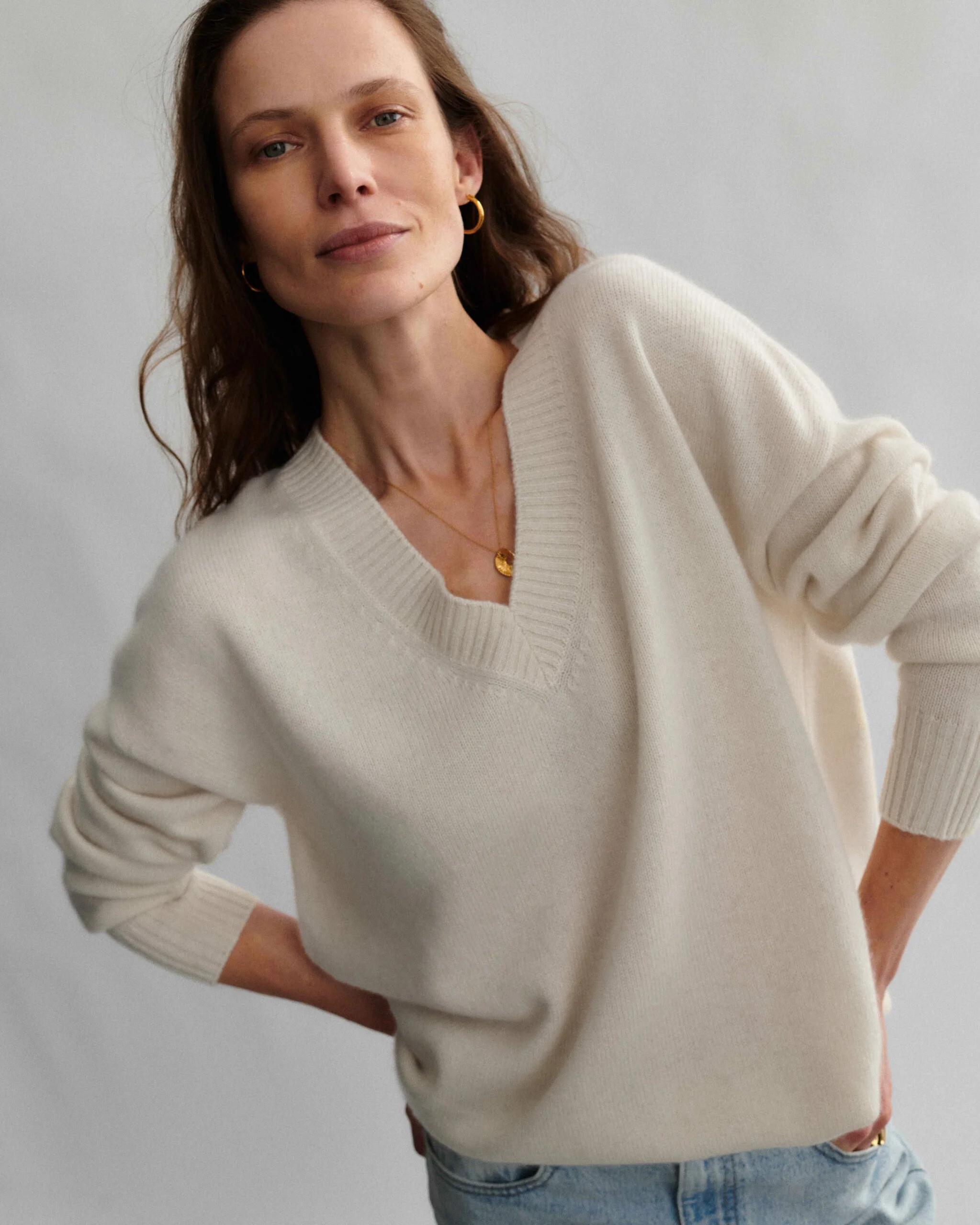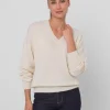 ELIA kaszmirowy sweter z dekoltem w serek krem