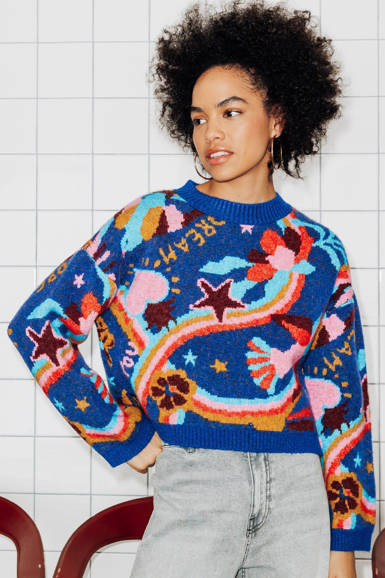 Kolorowy sweter damski Kolorowy nadruk