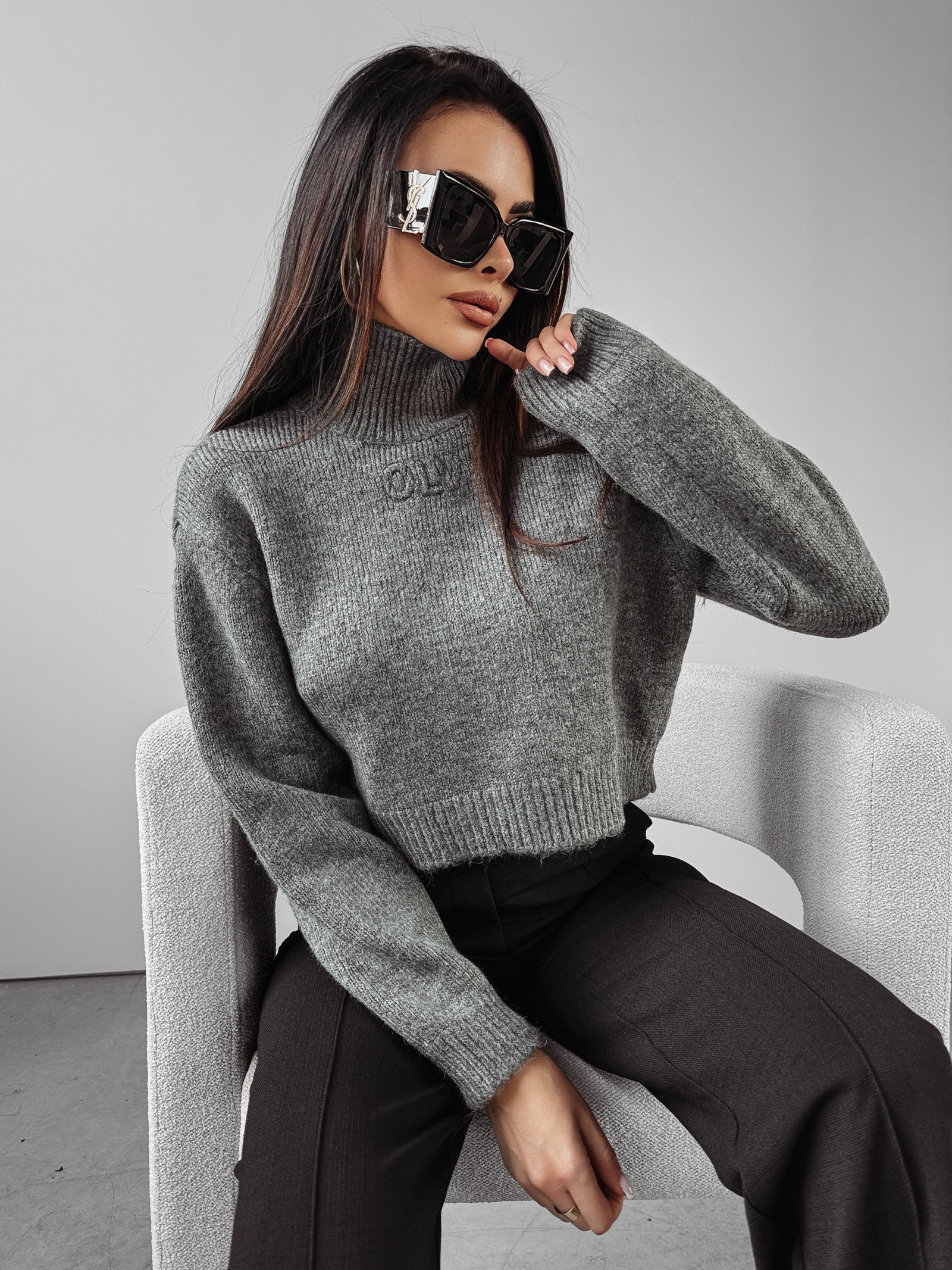 Sweter krótki z golfem Leila Ola Voga c.szary Madam Rock