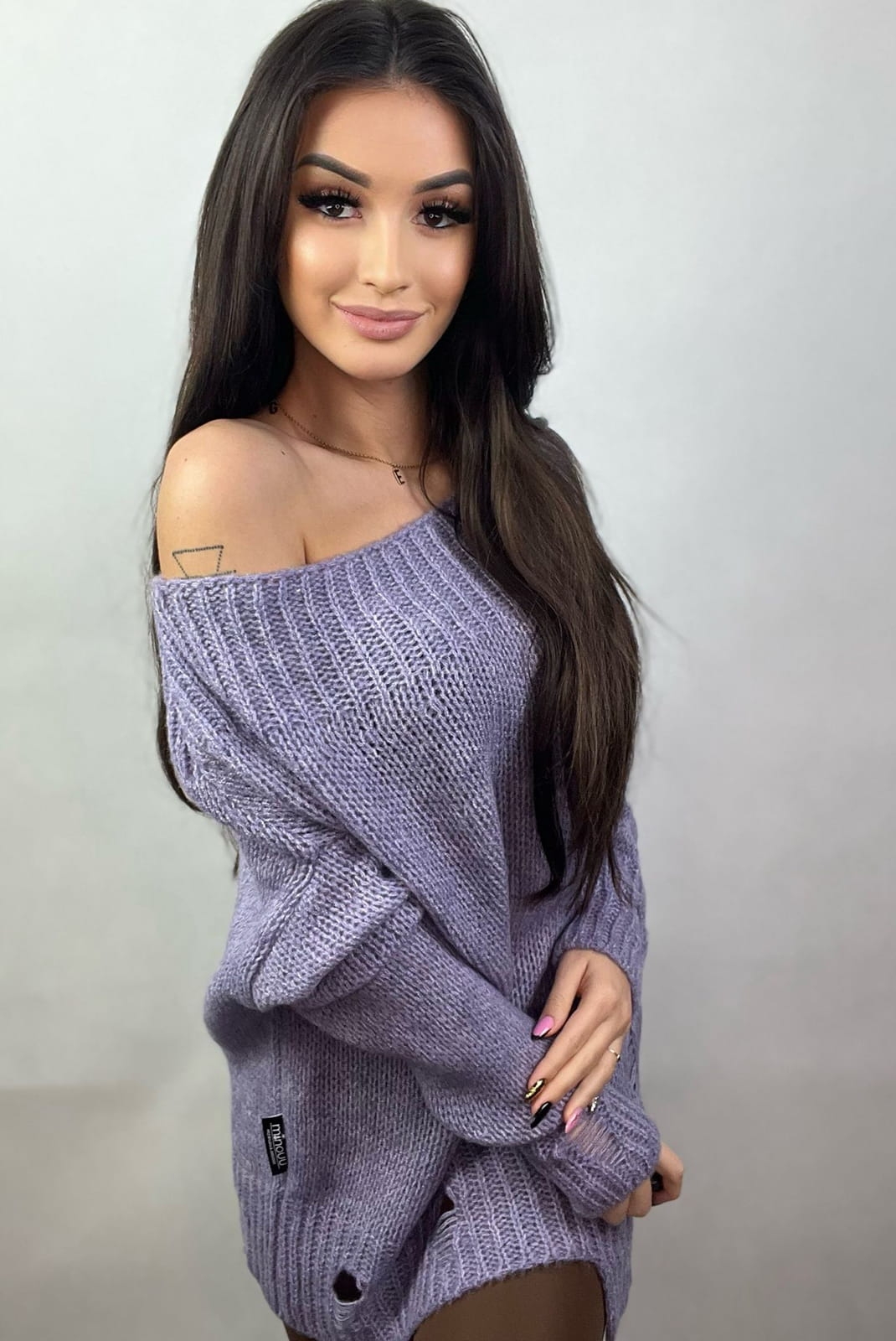 Luźny sweter z dziurami Laura Minouu liliowy