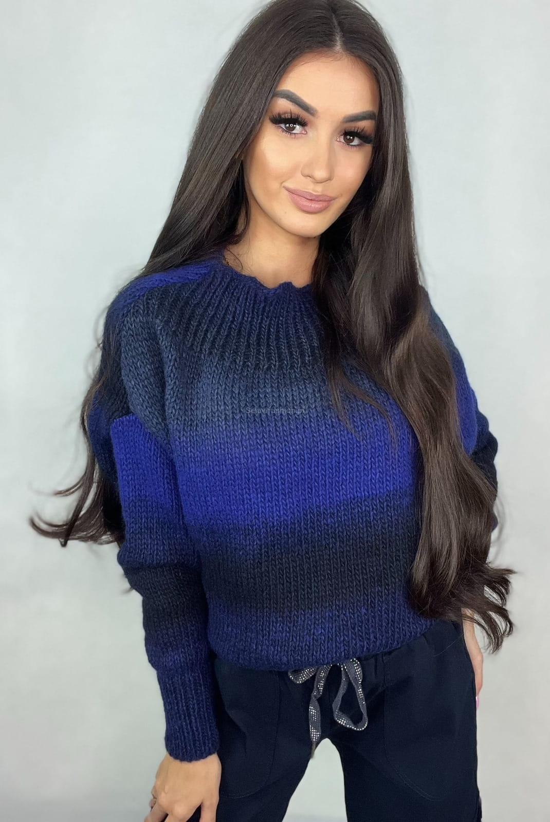 Klasyczny sweter ombre Minouu niebiesko granatowy