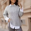 Sweter moherowy Dzwonek z szerokimi mankietami Yarn czerwony