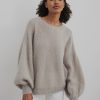 Sweter moherowy Dzwonek z szerokimi mankietami Yarn brązowy
