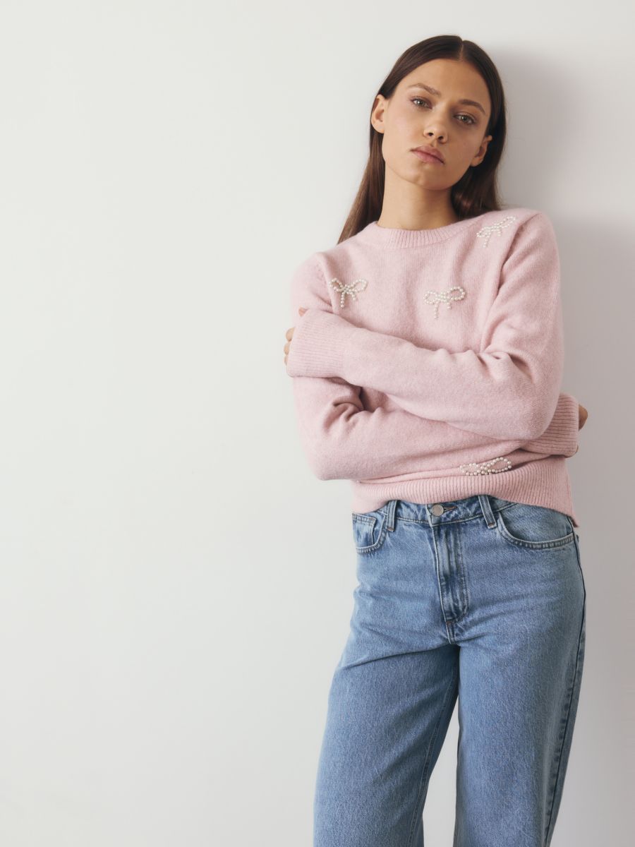Sweter z dekoracyjnymi kokardami