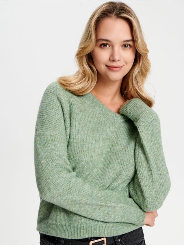 Sweter z miękkiej dzianiny Kolor zielony SINSAY 7381J 07M