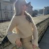 Beżowy sweter z warkoczami z alpaką i wełną IRIS