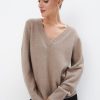 Beżowy sweter damski AUTUNNO II by COCO, rozcięcie na ramieniu. La Femme Boutique