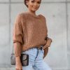 Sweter moherowy Dzwonek z szerokimi mankietami Yarn brązowy