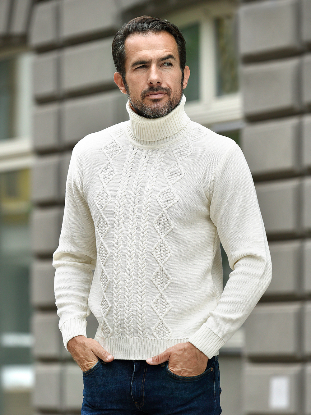 Sweter męski – wełna merino – Riccardo golf – krem Swetry Lasota