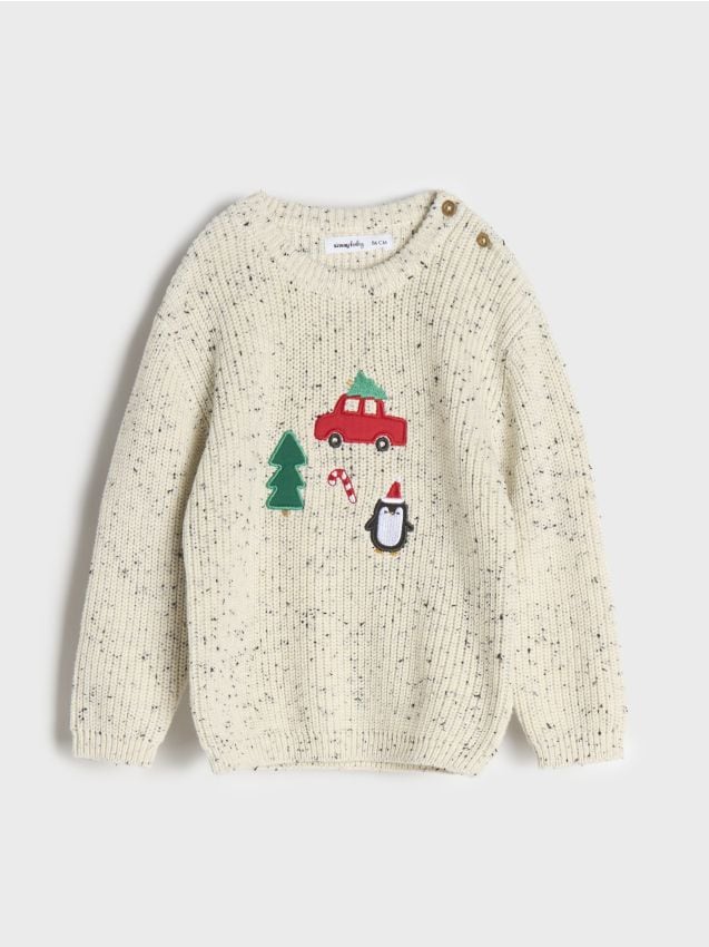 Sweter z motywem świątecznym Kolor kremowy SINSAY 5360C 02M