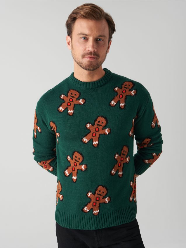 Sweter z nadrukiem Kolor zielony SINSAY 0206D 77X