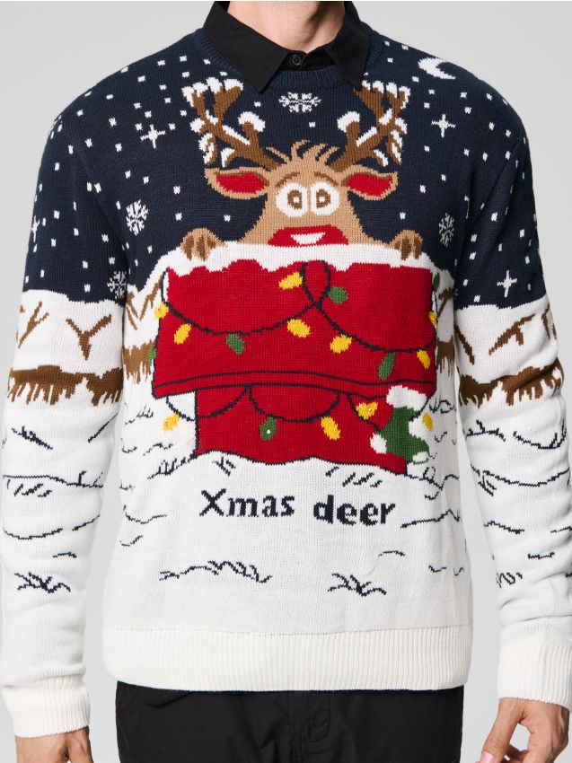 Świecący sweter ze świątecznym motywem Kolor granatowy SINSAY 650AW 59X