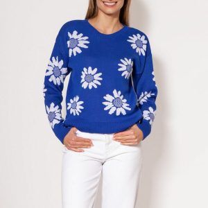 Beżowy Sweter damski ażurowy w kwiaty NICEA