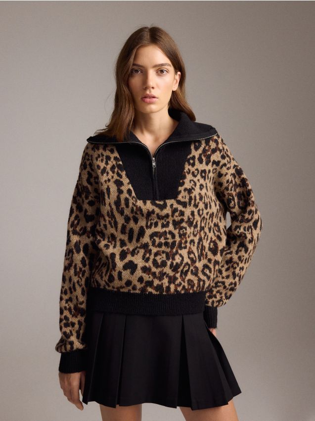 Sweter w panterkę z domieszką wełny Kolor wielobarwny RESERVED ZQ669 MLC