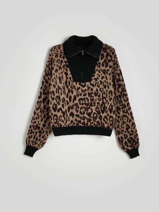 Reserved Sweter w panterkę z domieszką wełny wielobarwny Ceny i opinie