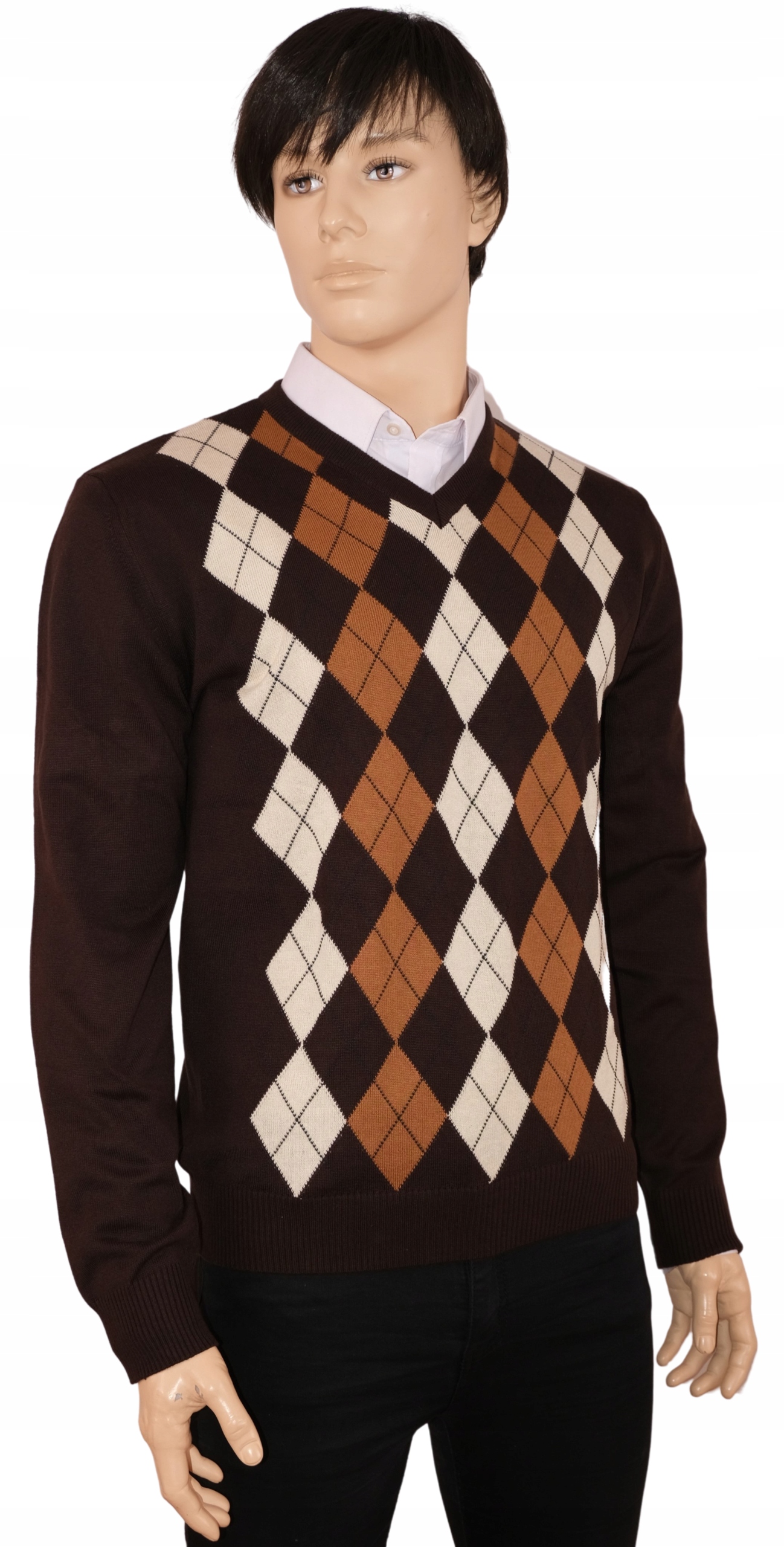 Sweter romby szpic V CarpeDiem POLSKI brązowy XL • Cena, Opinie Allegro