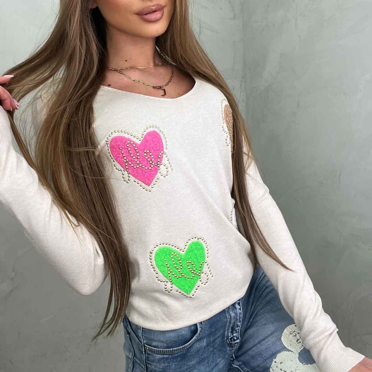 馃憵 Sweter w serduszka (be偶) Flow DIVEKO odzie偶 damska online 馃憵