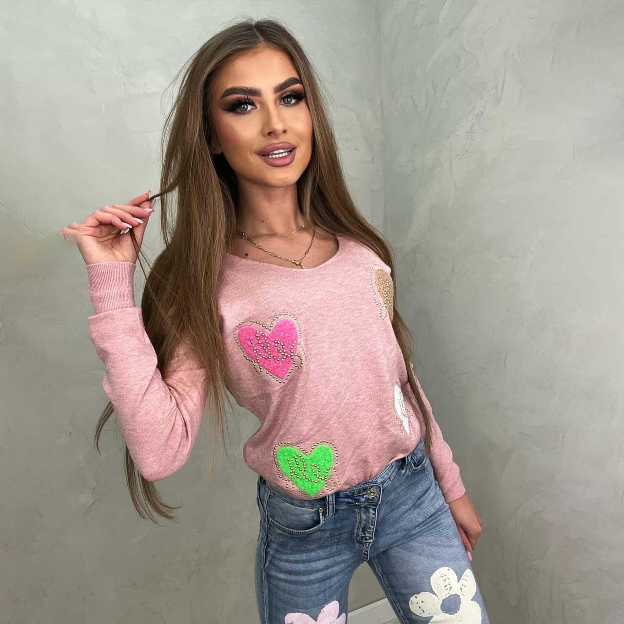 馃憵 Sweter w serduszka Flow (r贸偶) DIVEKO odzie偶 damska online 馃憵