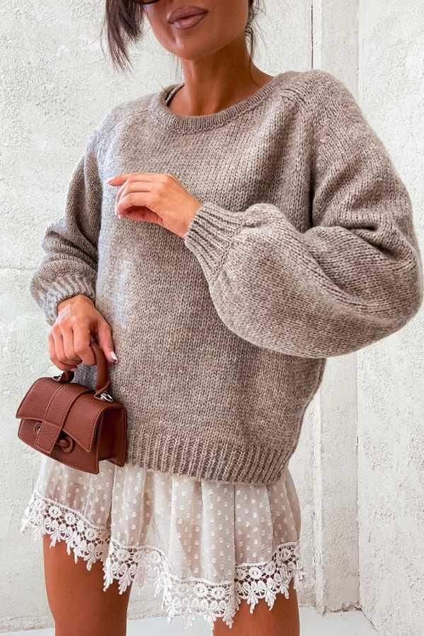 Sweter z bufiastymi rękawami sophie beżowy Ceny i opinie