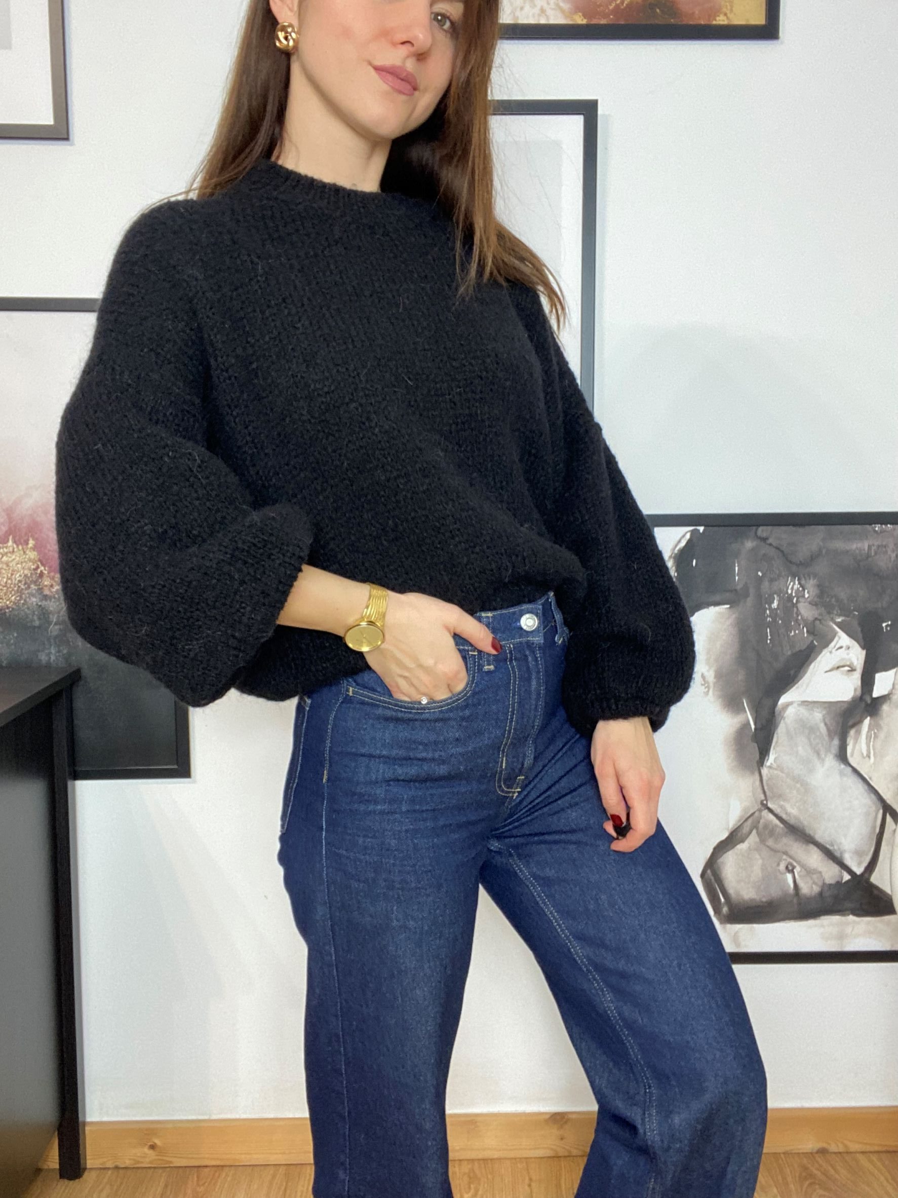 Sweter – bufiaste rękawy (czarny) | Suzanna Boutique
