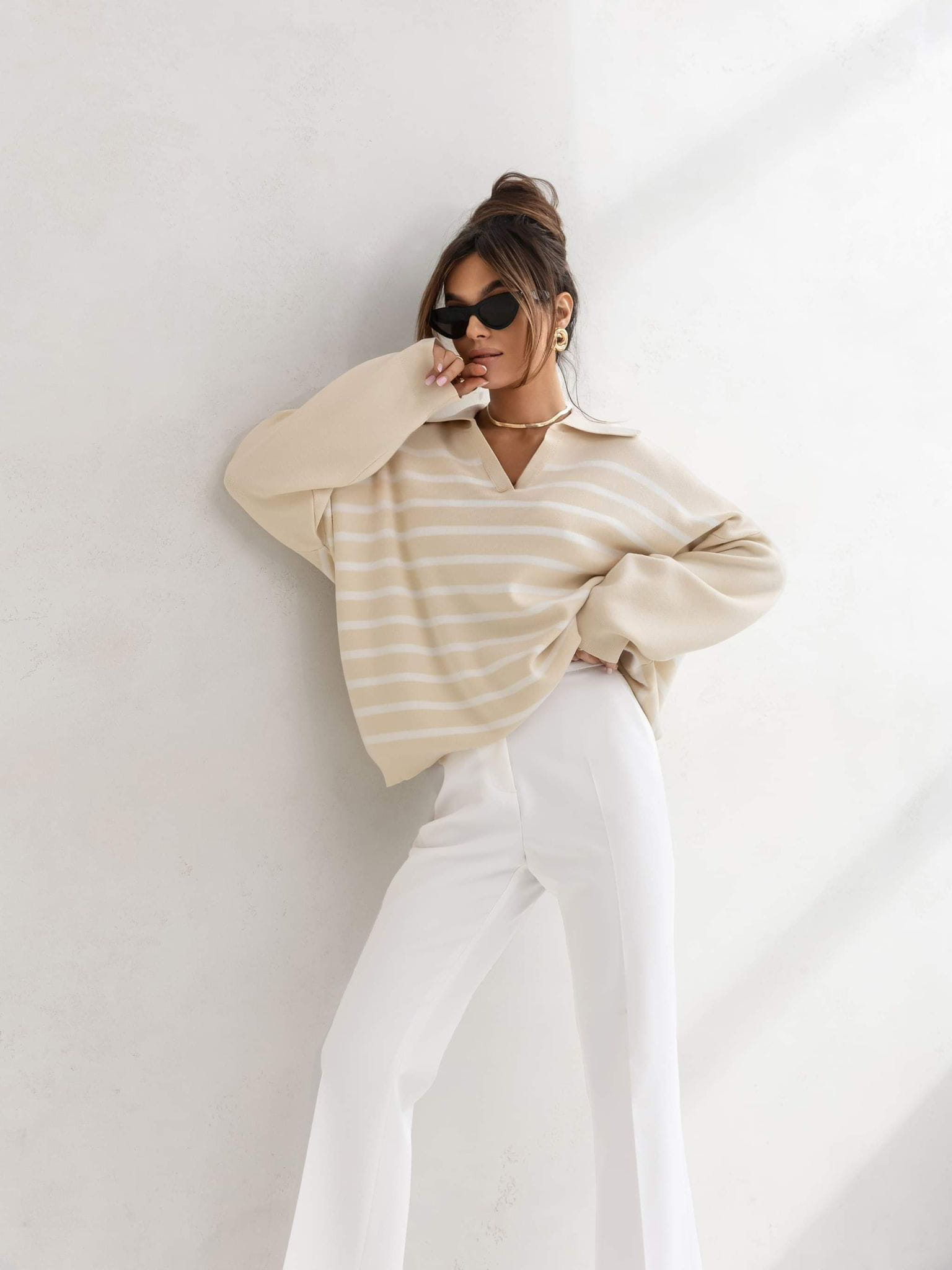 Sweter w paski z kołnierzykiem Cocomore | Sklep internetowy Butik Perla
