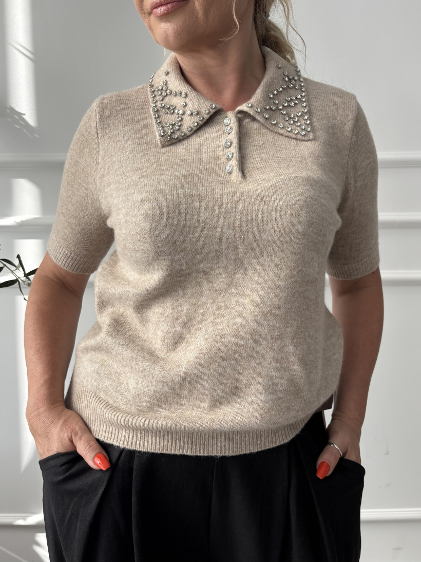 Sweterek Z Kołnierzykiem W Cyrkonie Cappuccino Taffi Woman Modna odzież dla każdej kobiety