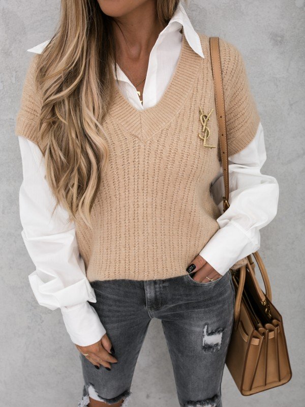 SWETER Z WSZYTĄ KOSZULĄ MADELINE CAMEL | Ubrania, obuwie oraz dodatki dla kobiet
