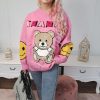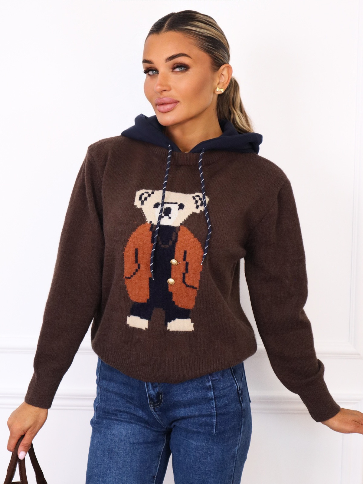 SWETER Z MISIEM Z PRZODU I KAPTUREM CZEKOLADOWY