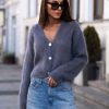 Sweter moherowy z krótkim rękawem zapinany na guziki Yarn jasno beżowy SelaviFashion