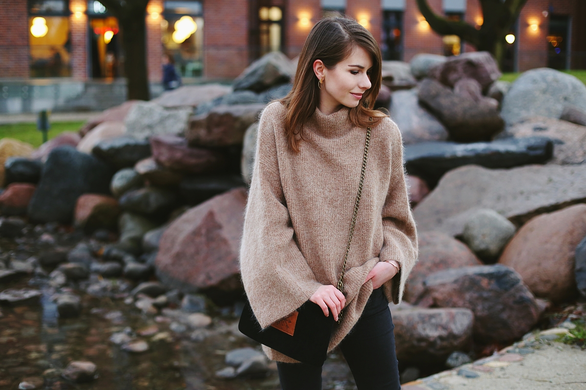 Wełniany sweter oversize z szerokimi rękawami Kapuczina