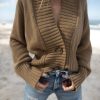Rozpinany Kardigan o Ażurowym Splocie Niebieski