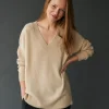 ELIA kaszmirowy sweter z dekoltem w serek krem