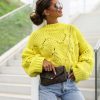 Żółty Sweter z Wełną o Eleganckim Warkoczowym Splotem Makkaria Renee